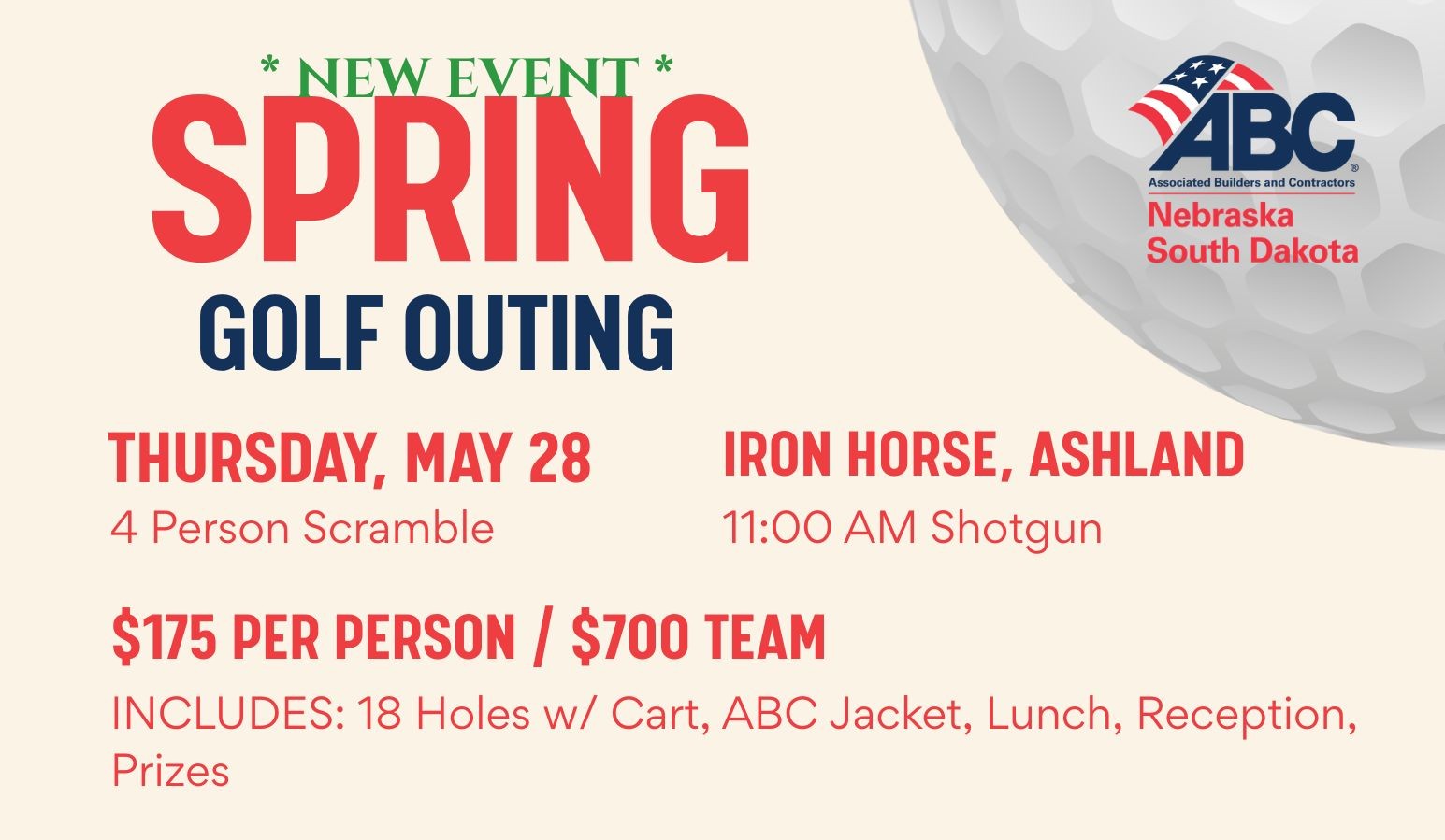 Includes: 18 Holes w Cart, ABC Jacket, Lunch, Reception, Prizes
