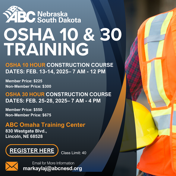 OSHA 30 Hour Construction Course Dates: February 25th - 28th Time: 7 AM - 4 PM