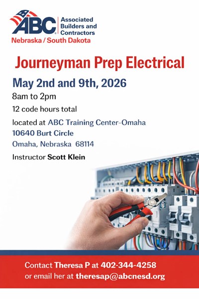 ABC Journeyman Prep classes-Continuing Education May 2 & 9, 2026 10640 Burt Circle Omaha NE 68114