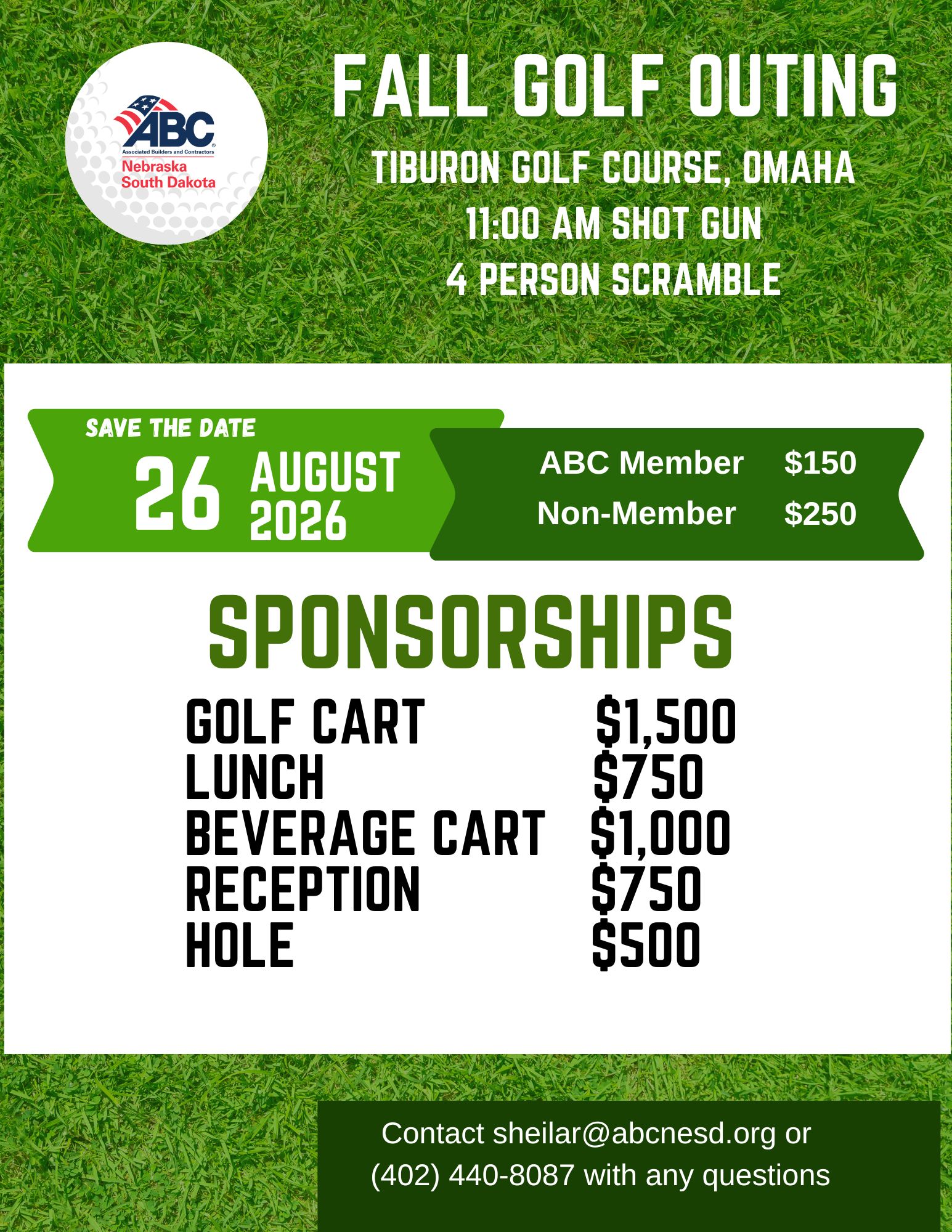 Includes: 18 Holes w Cart, ABC Jacket, Lunch, Reception, Prizes